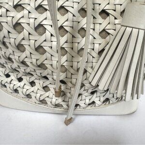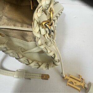 Ralph Lauren Woven Leather Debby Tassel Logo Drawstring Shoulder Bag Bucket Tote