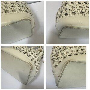 Bag is in good gently used condition. Obvious signs of wear to light colour and hardware. Some color wear to corners and edges. Interior clean, normal use. Not new.