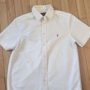 Ralph Lauren Youth Kid Sz 14-16 White Classic Button Down Short Sleeve Shirt