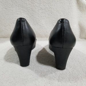 Ralph Lauren black wedge heels with metal buckle very little wear no scuffs
