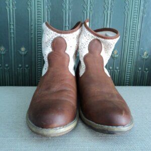 wonderful design Ralph Lauren Denim Supply ankle boot in tan leather with off white cotton crochet top