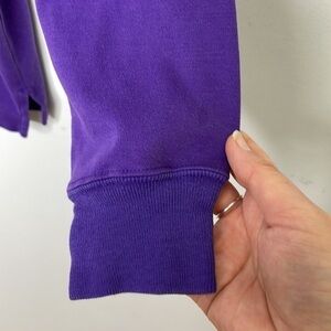 In second hand condition with some grease spots please see pictures. Love this saturated purple. Crest embroidered on the front. Blue label. Measure lay flat: shoulder 21,5'' bust 21'' length 28'' sleeve length 25,5''.
