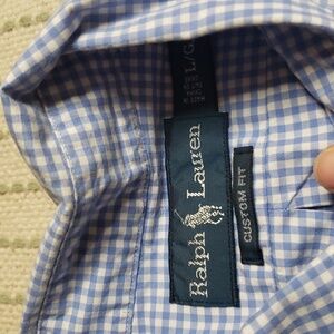 Ralph Lauren men's babyblue/white pink logo button down longsleeve large like new 100% cotton"classic fit"