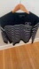 Measurements: about 20 inches p to p and 21 inches long. Size is xs, I am Sz 2 and this is a roomy or boxy fit, with slim fitting arms as shown in photos.