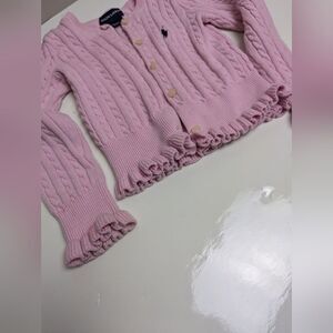 Ralph Lauren Girls cable knit candigan with ruffles pink Baby Sweater – 3T
