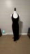 Stunning black velvet halter dress with a T back. Perfect for evening events. Side zipper.