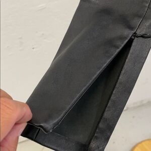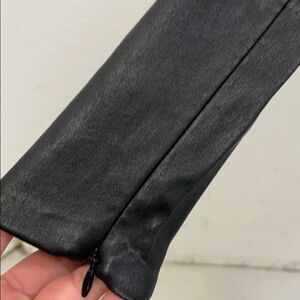 Sought after Ralph Lauren Black Label top, black fabric bodice with leather arms and neck. NWT, slight tear at neck closure as shown in pictures and slight tear under arm area at the seam on both sides. You would need to repair it so it doesn’t get bigger. Classy and Edgy.