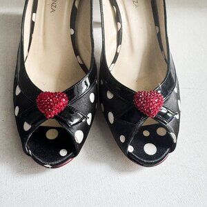 Ramon Tanza Black White Polka Dots Heart Detail PIn up Heels 9M.