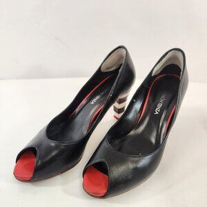 Ramon Tenza Galia Open Toe Black Heels Women 7M Striped Spain with Box Shoe Bag