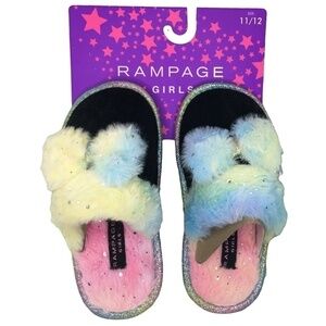 Rampage Rainbow Slippers Shoes Little Girls Sparkle Faux Fur Bedroom House NIP