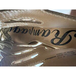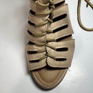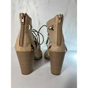 Rampage Heel Sandals Womens Size 6.5 Beige Lace Up Cut Out Peep Toe Leather