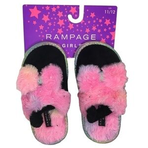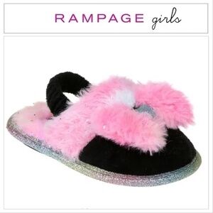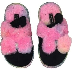 Rampage Rainbow Slippers Shoes Little Girls Sparkle Kitten Soft Faux Fur Bedroom House NIP