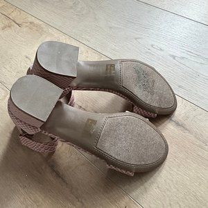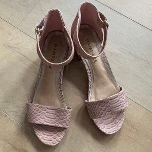 Rampage Melsy low block heeled sandals in blush pink snake print with velcro ankle closure. New unused condition.