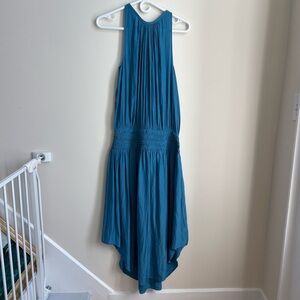 The perfect length dress does exist.The Audrey Dress is a mid-length piece featuring a high neckline and a flowing bodice that transitions beautifully to an asymmetrical hemline. The design includes a smocked elastic waist for added comfort and style, crafted from luxurious crepe de chine fabric. This dress is true to size and requires dry cleaning for care.