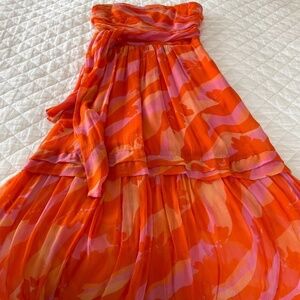 Ramy Brook Bernadette Midi Dress Strapless Floral Orange Pink Size 2