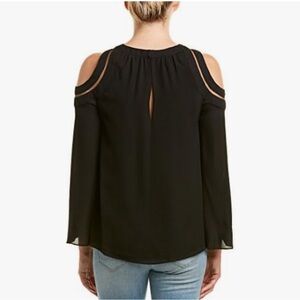 Ramy Brook Lex Cold Shoulder Longsleeve Blouse Top Silk Black Mesh Small S