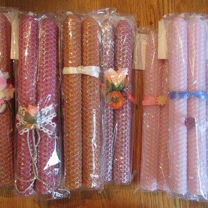 Random Pick, 1 Pair, 8" Bees Wax Candles, Decorated, Pink, Orange, Red, Coral