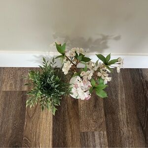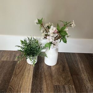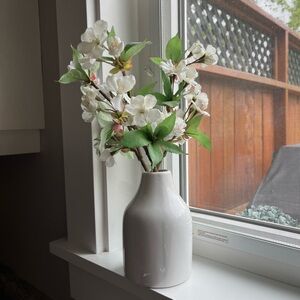 Enhance your home with this elegant white ceramic vase featuring a beautiful floral arrangement. Perfect for adding a touch of nature to any room.