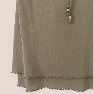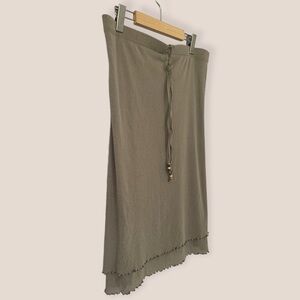 Y2K style skirt with a double layered curly edge (lettuce). Colour is a little brighter than shown in photos. Excellent condition. 100% polyester. Material is stretchy. Size L.
