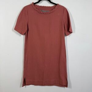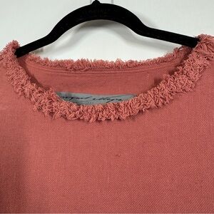 Raquel Allegra Rust Red Fringe Neck Cotton Boho Minimalist Dress