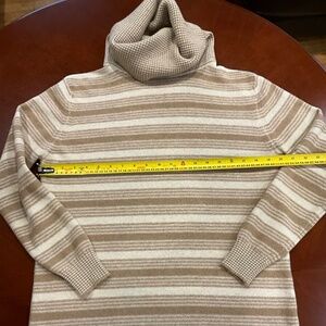 Very comfortable and warm. Pit to pit 20 inches; 44 inches long and 24 inch sleeve.