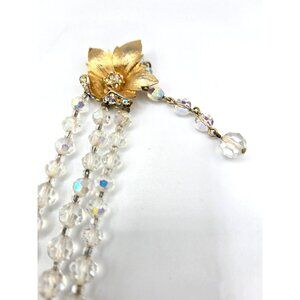 Rare 1940s Graduated Crystal Necklace and Floral Rhinestone Gold Clip Earrings