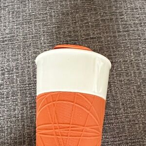 Rare 2013 Starbucks Coffee Mug Ceramic travel mug with orange silicone wrap