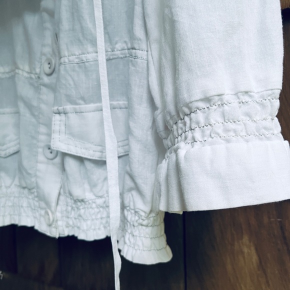 Rare Anthropologie Ryu Linen & Cotton Gathered Collar White Short Jacket Size S