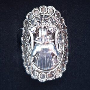 Rare Antique Balinese Demon Queen Rangda Sterling Silver Powerful Ring