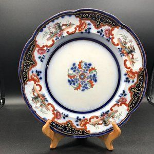 Rare Antique Enamel Decorated Chinoiserie Style Painted Border Plate