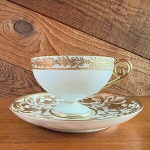 Gold details are slightly raised / embossed and handpainted wit what appears to be 24K gold. Add elegance to your tea service for your guests.
