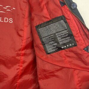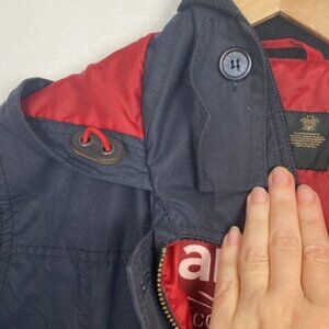 Rare Barbour x J.Crew Shore Waxed Jacket Coat - Navy & Red - Waxed - Lined - Hooded - Black/Dark Navy Corduroy Collar - Hidden zip (2way) + buttons - 2 front pockets + 1 zipped inside - Snap Button cuffs - Midlength - Rare - Very Good condition - Minor signs of wear - See pictures for detail & care instructions - Size US6 UK10