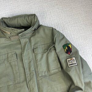 Rare Billabong x Bob Marley Mens M Green Military Style Jacket Rasta Reggae Read