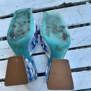 These rare Betsy Johnson shoes are stunning! They have beautiful embroidery and beads around the floral design, and are a slip on block heel with a bit of a boho retro vibe. The top of the shoes are a white mesh and the sides are a satin fabric. They look so beautiful on, because your skin shows through some of the white mesh while the embroidery and beading comes forward.