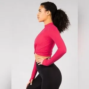 Rare BuffBunny Knotty & Nice Crop Top Raspberry Red Size Medium