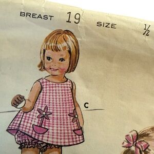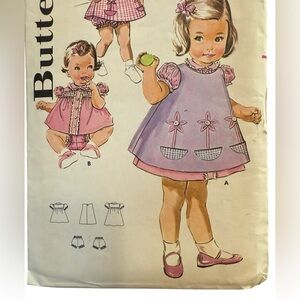 Rare Find Vintage 1960 Butterick Sewing Pattern 9818 Toddler's Topper Dress & Panties Set and Pinafore Size 1/2 (6 months) Breast 20" Puffy Sleeves