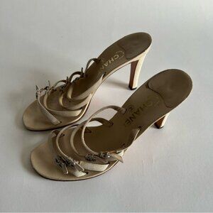 Rare Chanel Iconic "CC" Rhinestone Metallic Leather Sandal Heels size 40