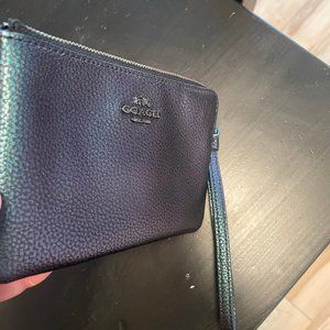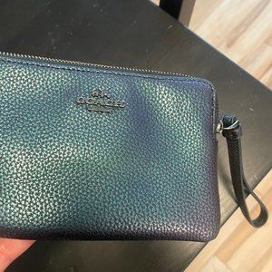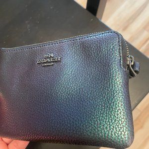 Coach Holographic/Hologram Blue/Green/Purple/Oil Slick Leather Wristlet. 4"Tall x 6"Wide. Two inner side pockets for credit cards, cash. Like New, with Box.