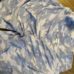 Stylish blue camouflage sports bra and leggings set. Perfect for workouts.