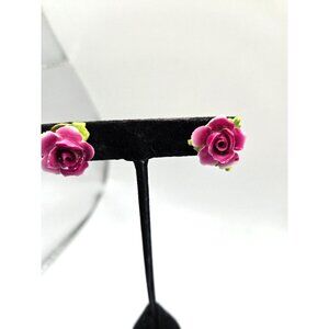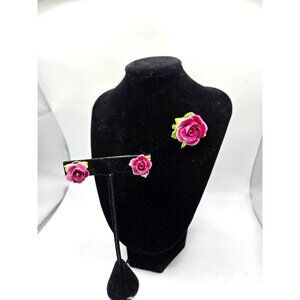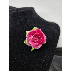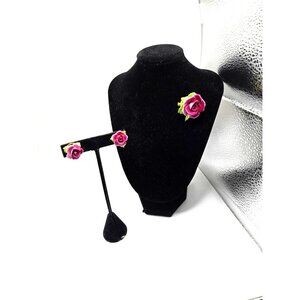 Rare Condition Bone China Rose Brooch Pin and Earrings Made in England Antique