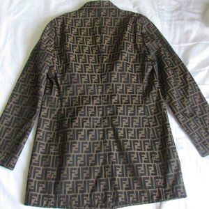 Vintage EUR5000 FENDI Zucca Canvas Double Brest ,F-printed Monogram dress-y trench/coat/jacket IT 42,US 2-4-6, XS-S.