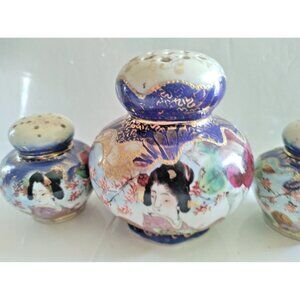 Rare Hand painted Shaker Japanese GEISHA Salt & Pepper & Sugar Shaker Set