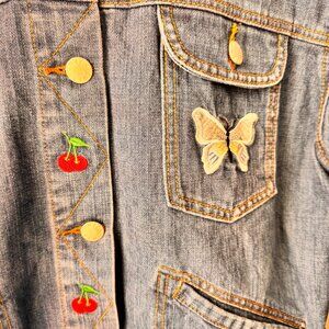 Unif Women’s Butterfly Cherry Embroidered Denim Jacket