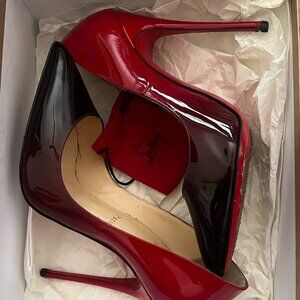 Stunning and rare black-to-red gradient patent leather with the signature red sole. Style code 1160842 (VGuni Loub, WDsh, BlkPat). Elegant knotted detail, 120mm heel. In great condition, a true statement pair for any collection.