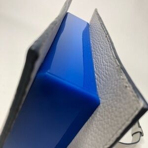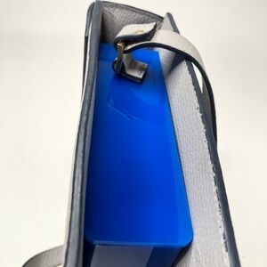 NEW WITHOUT TAGS Meli Melo Thela Prep Spex blue box medium leather rectangle shoulder bag in an elephant grey pebbled leather. HARD TO FIND RARE DESIGNER PIECE! handbag label with Italian heritage. This unique & stunning quality bag makes a statement with it bright blue acrylic-like hard boxed interior which shows on the outside sides. Strap is adjustable. Metal snap closure of the flap. Excellent pristine condition with no flaws. See photos and video for measurements and details.