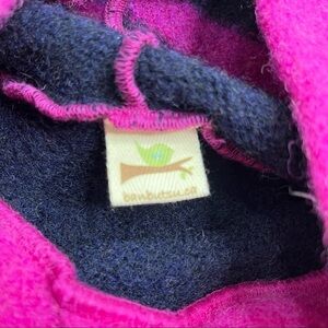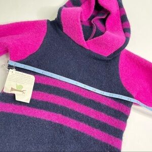 NEW WITH TAG Banbutsu handmade striped star sweater hoodie made from 100% wool in a bright barbie pink, purple and navy blue color. Hood is pointed on the end for cute added design. Keep your little on stylish yet oh so warm and comfy this Winter. The perfect transition piece for outdoor play this Spring. Such a unique beautiful one-of-a-kind piece. In excellent brand new condition with no flaws. Please see photos and video for measurements and details. Youth Girl's size approximately 5-6years (please double check measurements with an item your child already has that fits well).