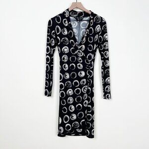 Rare Norma Kamali Kulture Bottle Bottoms Print Minimalist Work Office Midi Dress