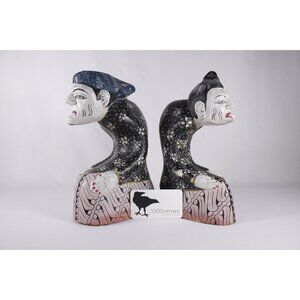 Rare Pair Javanese servant figurines 10" / 25 cm, Wooden wajang East