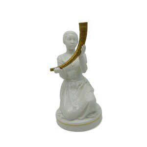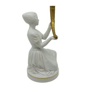 Crafted in fine porcelain, the figurine's detailed design showcases a girl in traditional attire, holding a beautifully gilded horn.