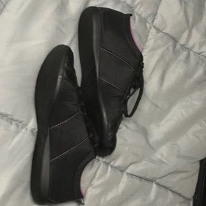 Pair of Rare Reebok shoes black and pink size 6 1/2 womens, used but in excellent condition light weight fits narrow foot, lots of life left in these cute shoes.